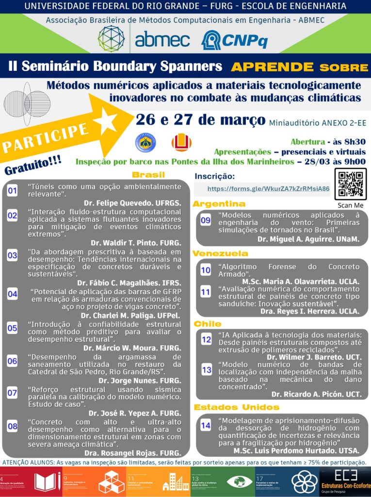 2nd Boundary Spanning Seminar in Engineering at FURG: Numerical Methods Applied to Technologically Innovative Materials in the Fight Against Climate Change, Federal University of Rio Grande (FURG), 26-28 March 2026.